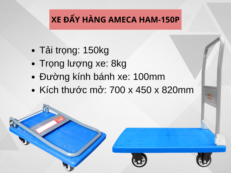 Xe Đẩy Hàng 4 Bánh Sàn Nhựa Ameca HAM-150P