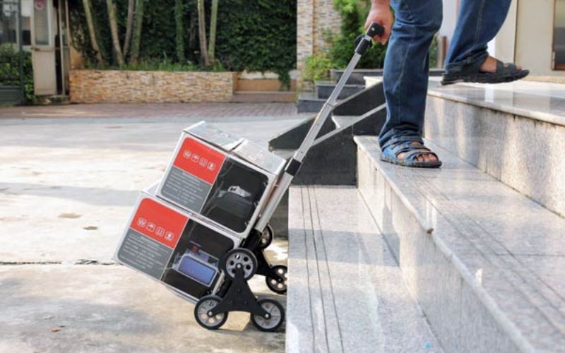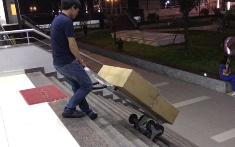 Sử dụng xe đẩy leo cầu thang chuyên dụng là một trong những cách hiệu quả và an toàn nhất khi cần đưa vật nặng lên các bậc thang. Loại xe này được thiết kế đặc biệt với hệ thống bánh xe 3 chấu xoay hoặc cơ chế trượt tự động, giúp xe dễ dàng “bò” lên từng bậc mà không cần dùng quá nhiều sức. Khi sử dụng, bạn chỉ cần cố định chắc chắn vật lên xe bằng dây đai, giữ thăng bằng và di chuyển chậm rãi theo từng bậc. Phương pháp này đặc biệt phù hợp để vận chuyển các thiết bị nặng như tủ lạnh, máy giặt, bình nước hoặc thùng hàng lớn trong nhà cao tầng và chung cư không có thang máy.