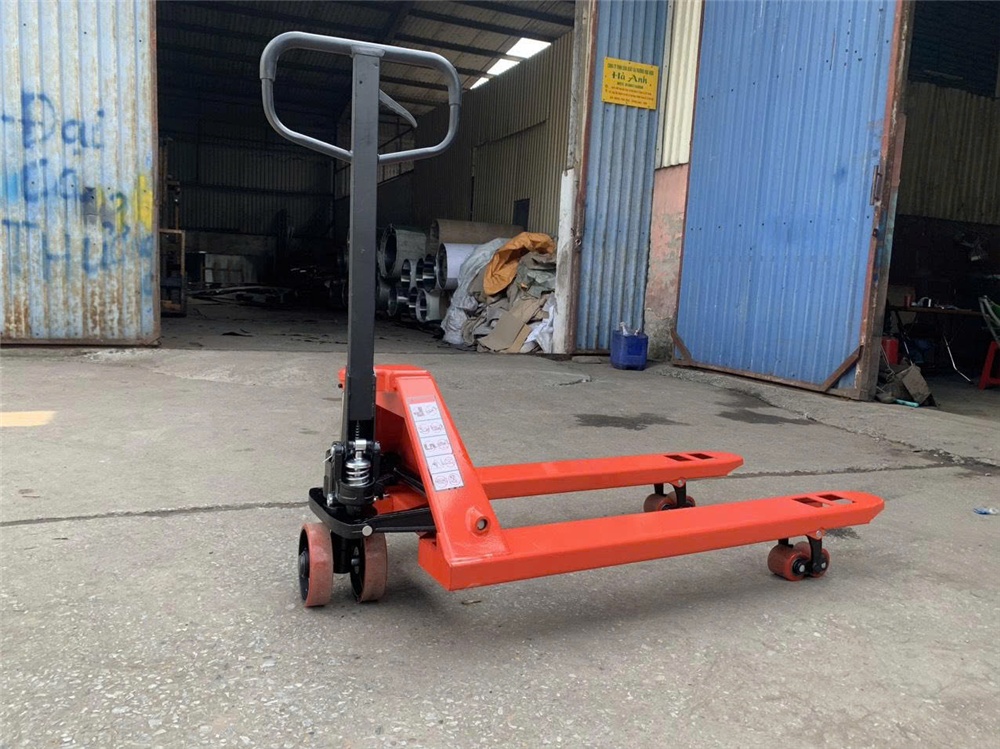 – Thao tác với xe nâng tay thấp 3 tấn dễ dàng chỉ cần hạ cần gạt và đẩy xe cho càng nâng lọt vào đáy hàng hóa và tiếp tục đẩy cần gạt lên cho xe nâng lên. Lúc này việc di chuyển hàng hóa đã không còn khó khăn.